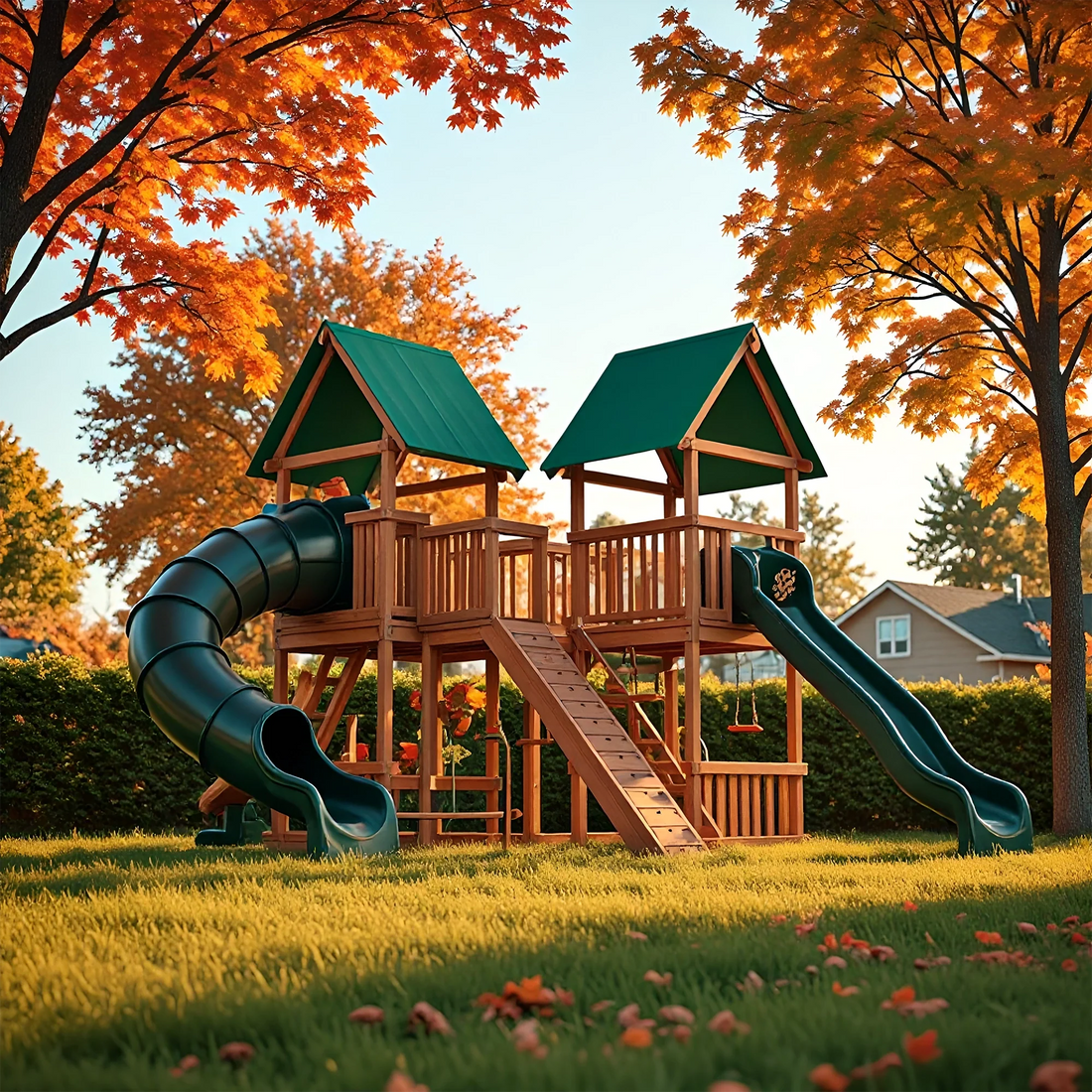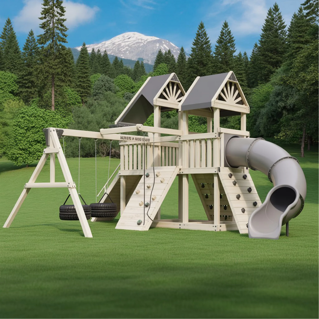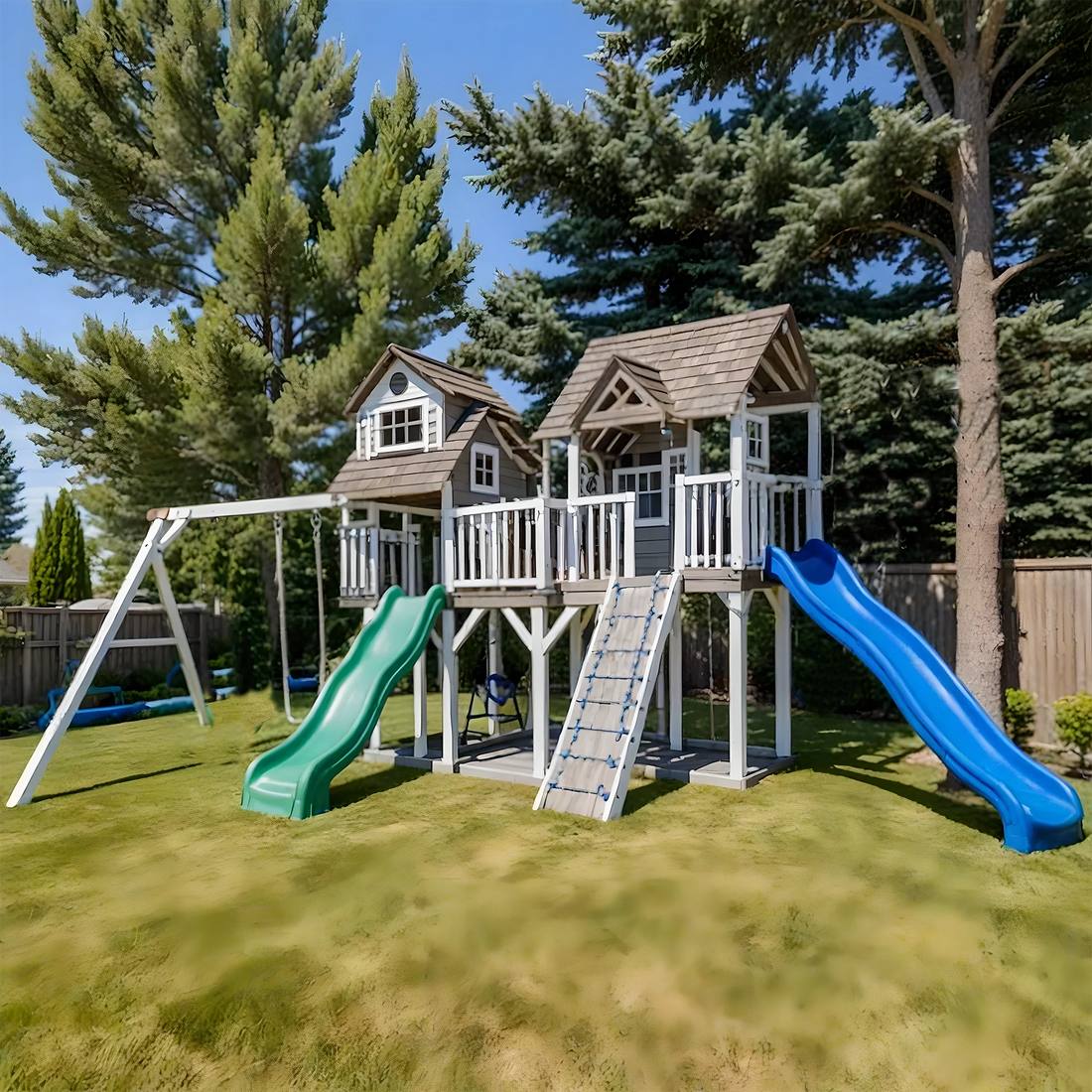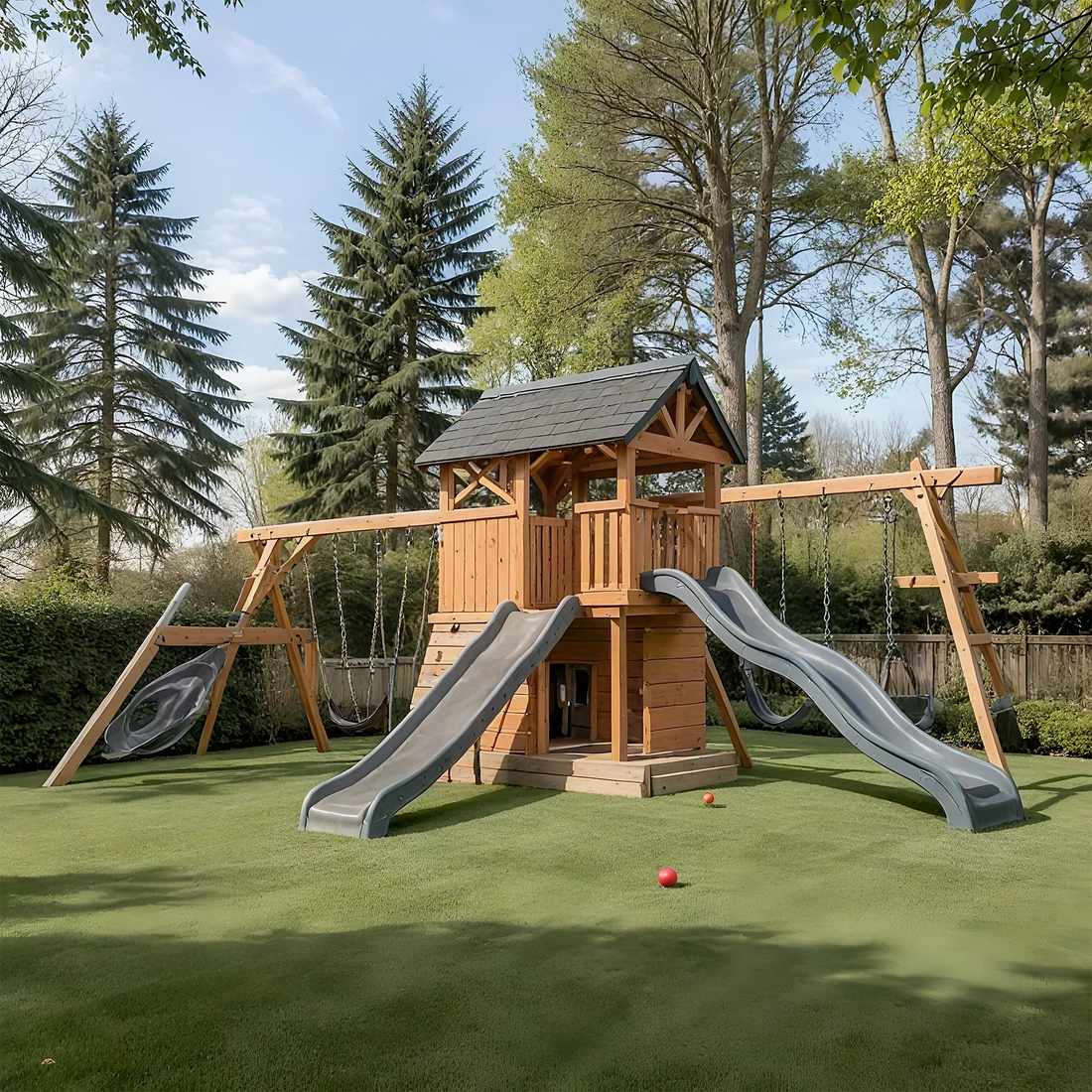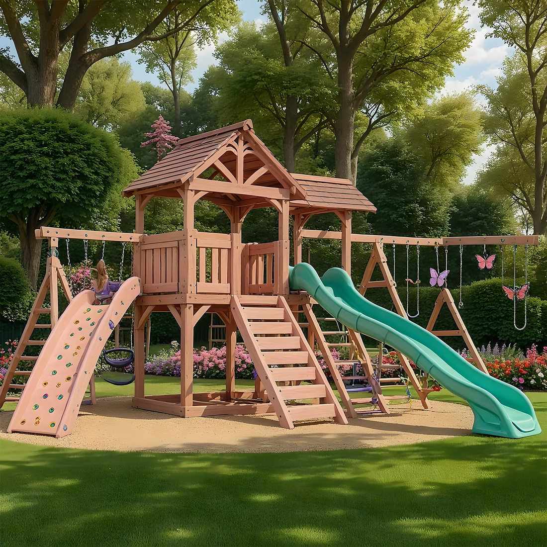 Backyard Kids Playground – Wooden Swing Set with Playhouse, Slides & Climbing Features