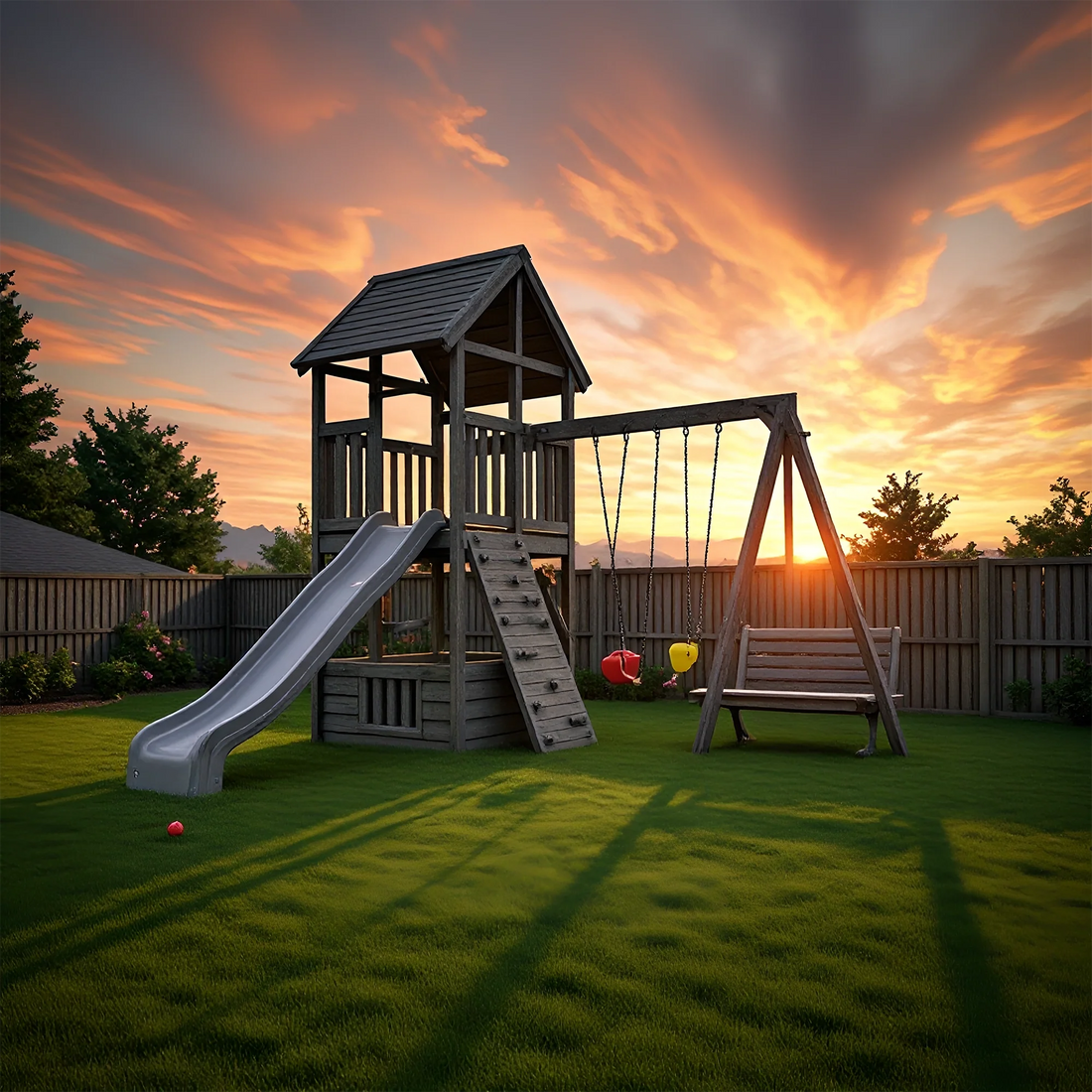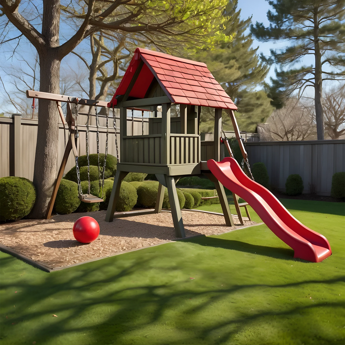 Backyard Wooden Playhouse with Swings, Slide & Climbing Ladder – Safe Kids Playground