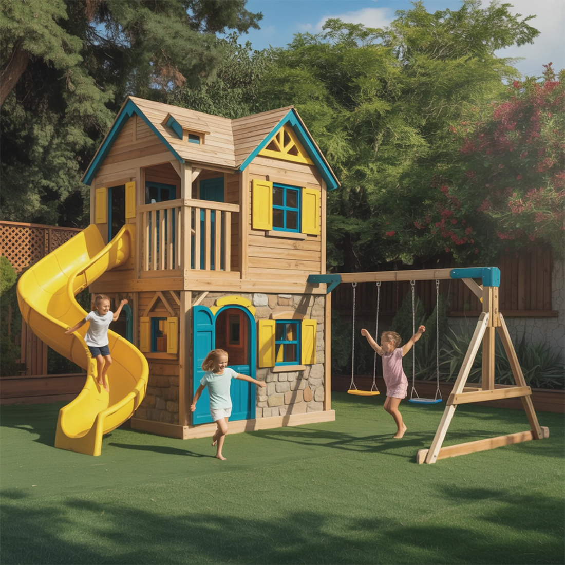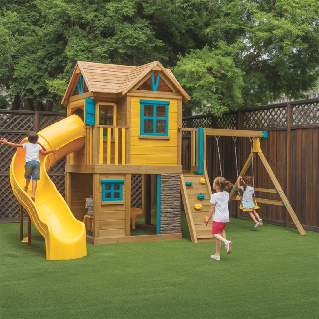 Deluxe Wooden Swing Set with Slide & Playhouse – Safe Backyard Playground for Kids