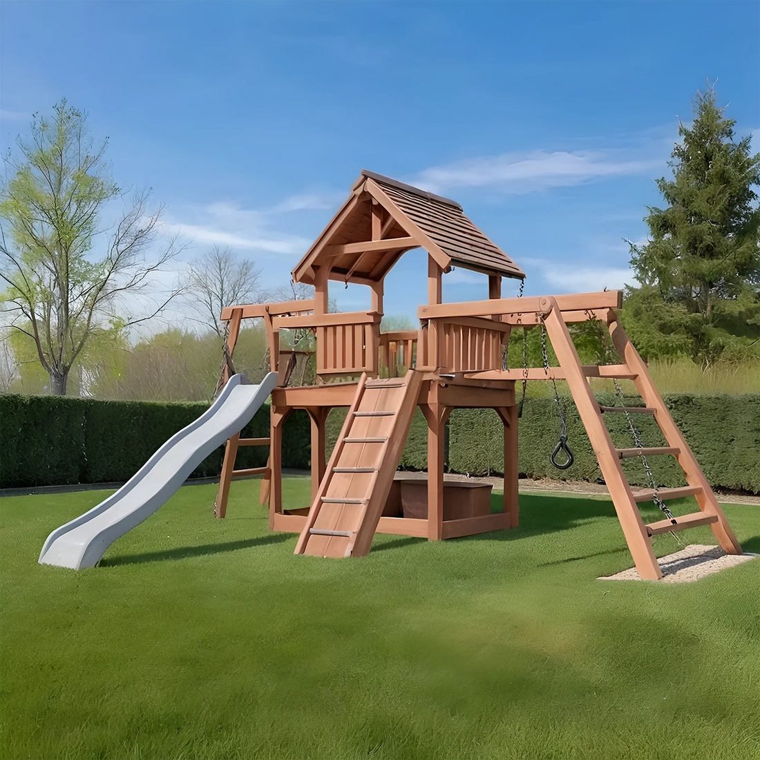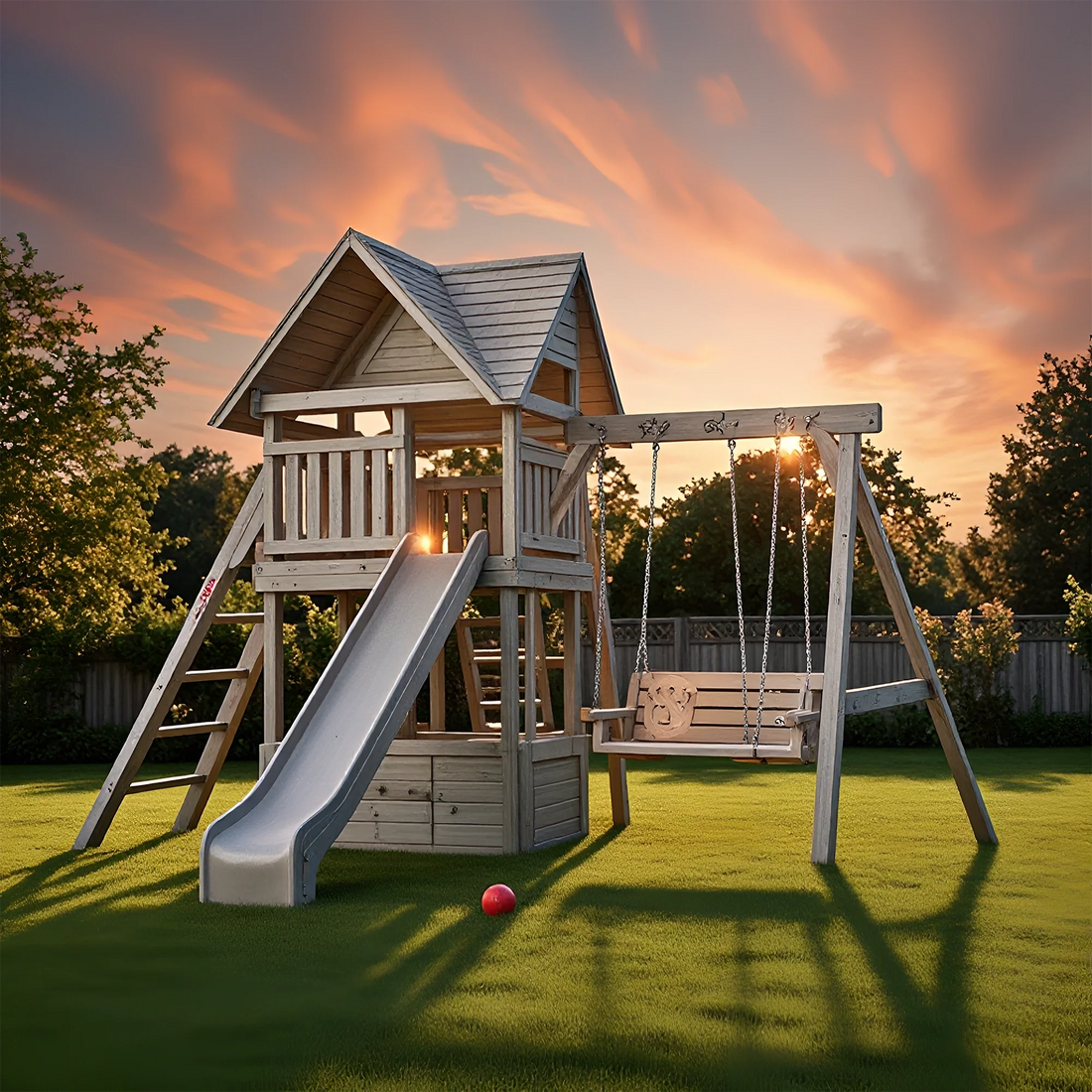 Kids Outdoor Wooden Playset – Safe Backyard Playground with Swings & Slides