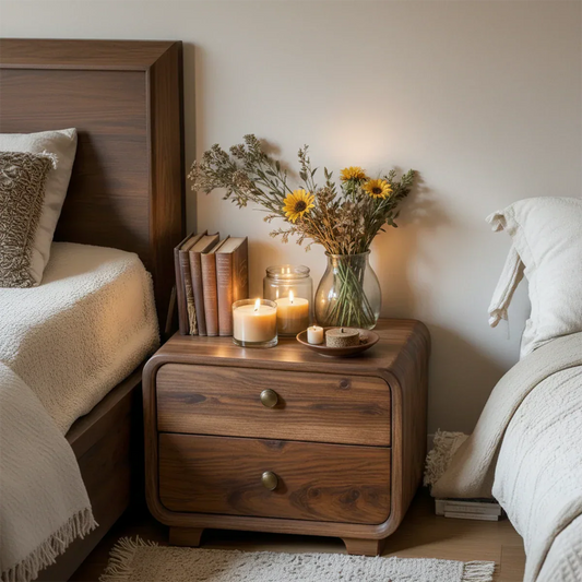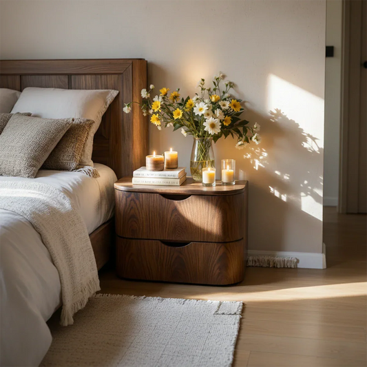 Curved Solid Wood Nightstand – Two-Drawer Minimalist Design