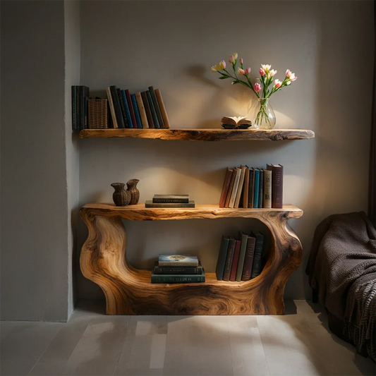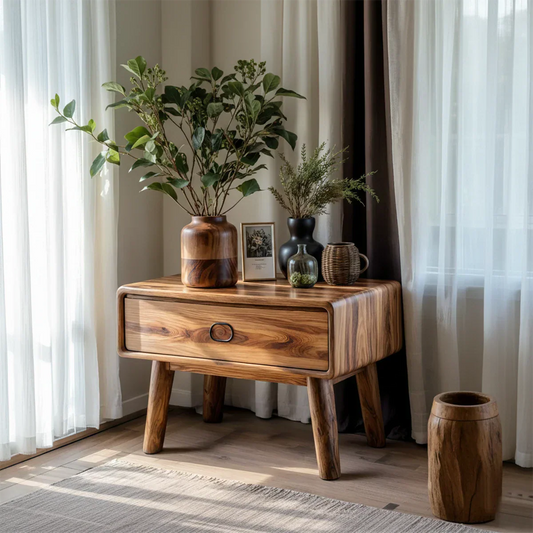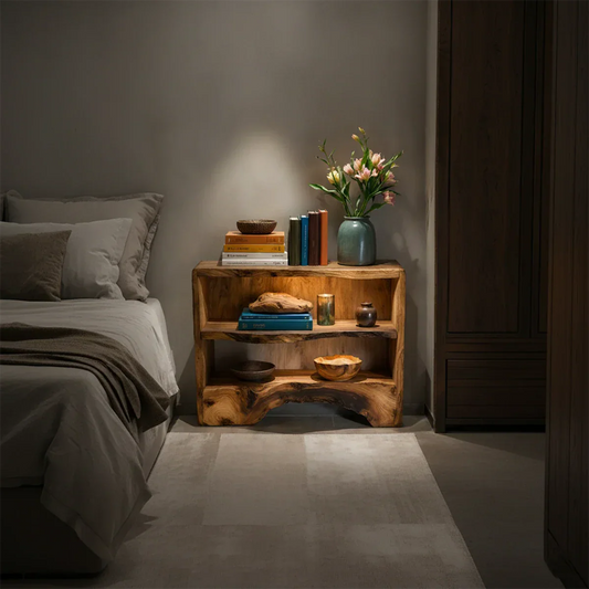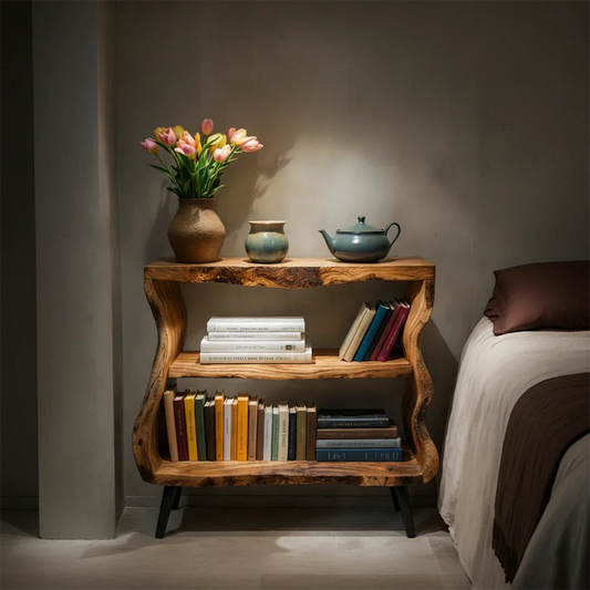 Solid Wood Sculptural Nightstand – Live-Edge Form