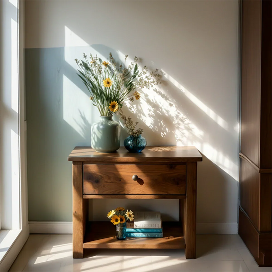 Solid Wood Minimalist Nightstand – Single Drawer & Open Shelf