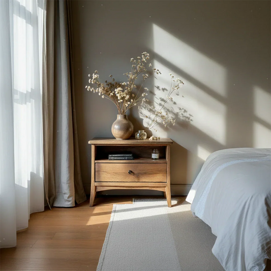 Rounded Solid Wood Nightstand – Minimalist Single-Drawer Design