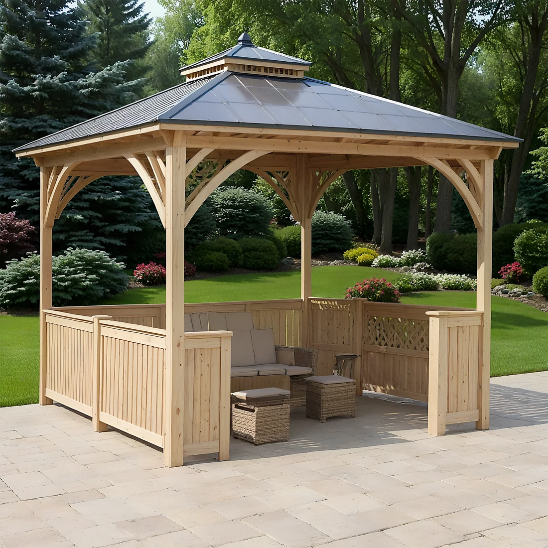 12x12 Wooden Gazebo with Steel Roof | Outdoor Pavilion for Patio, Garden & Poolside Living