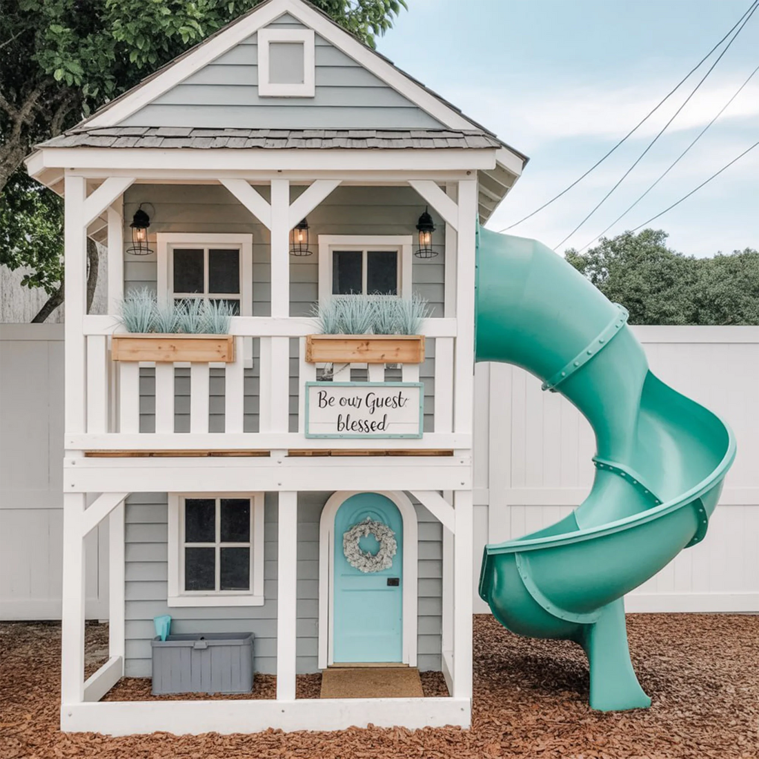 Wooden Kids Playhouse with Slide | Outdoor Backyard Play Structure 22ft x 12ft x 9ft