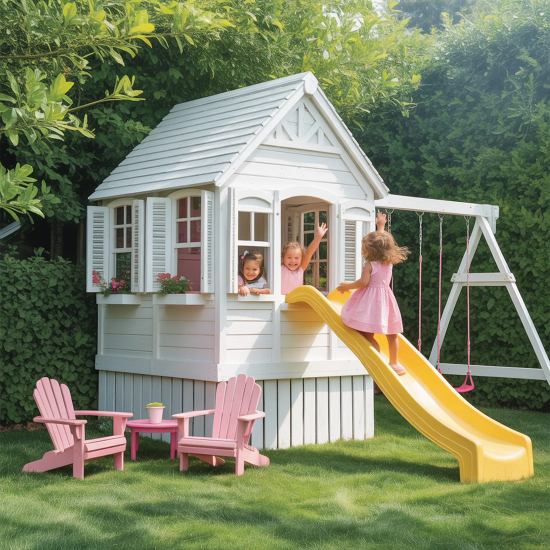 Bring joy to your backyard with this Wooden Kids Playhouse. Designed with a safe slide...