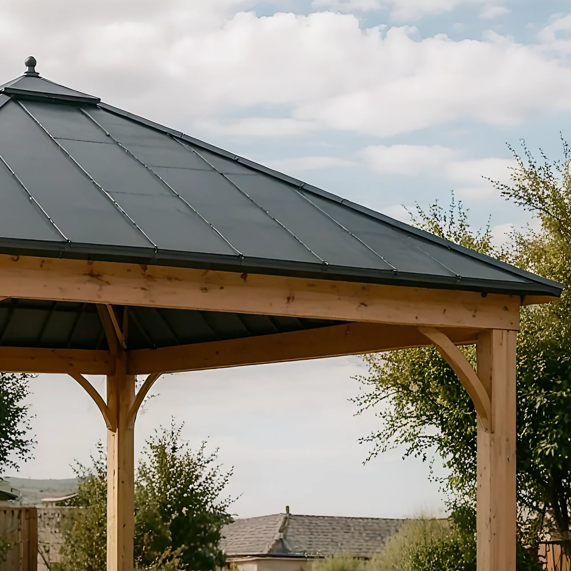 12x12 Wooden Gazebo with Steel Roof | Outdoor Pavilion for Patio, Garden & Poolside Lounge