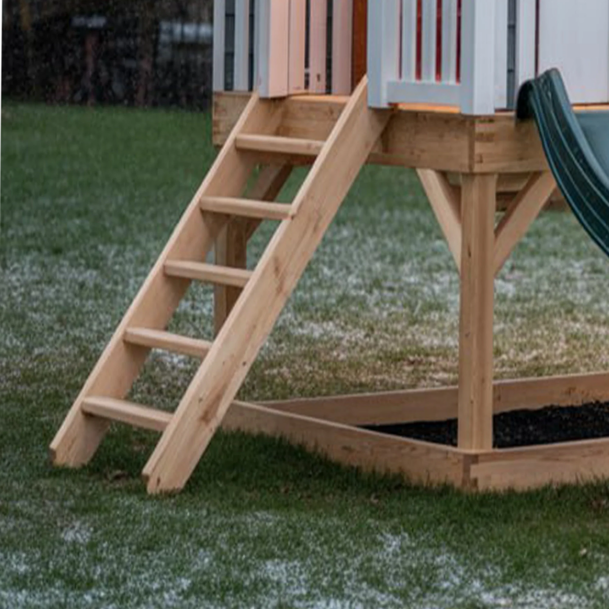 Playhouse Design: Features windows, railings, and a mini porch, creating a realistic home-like play space.