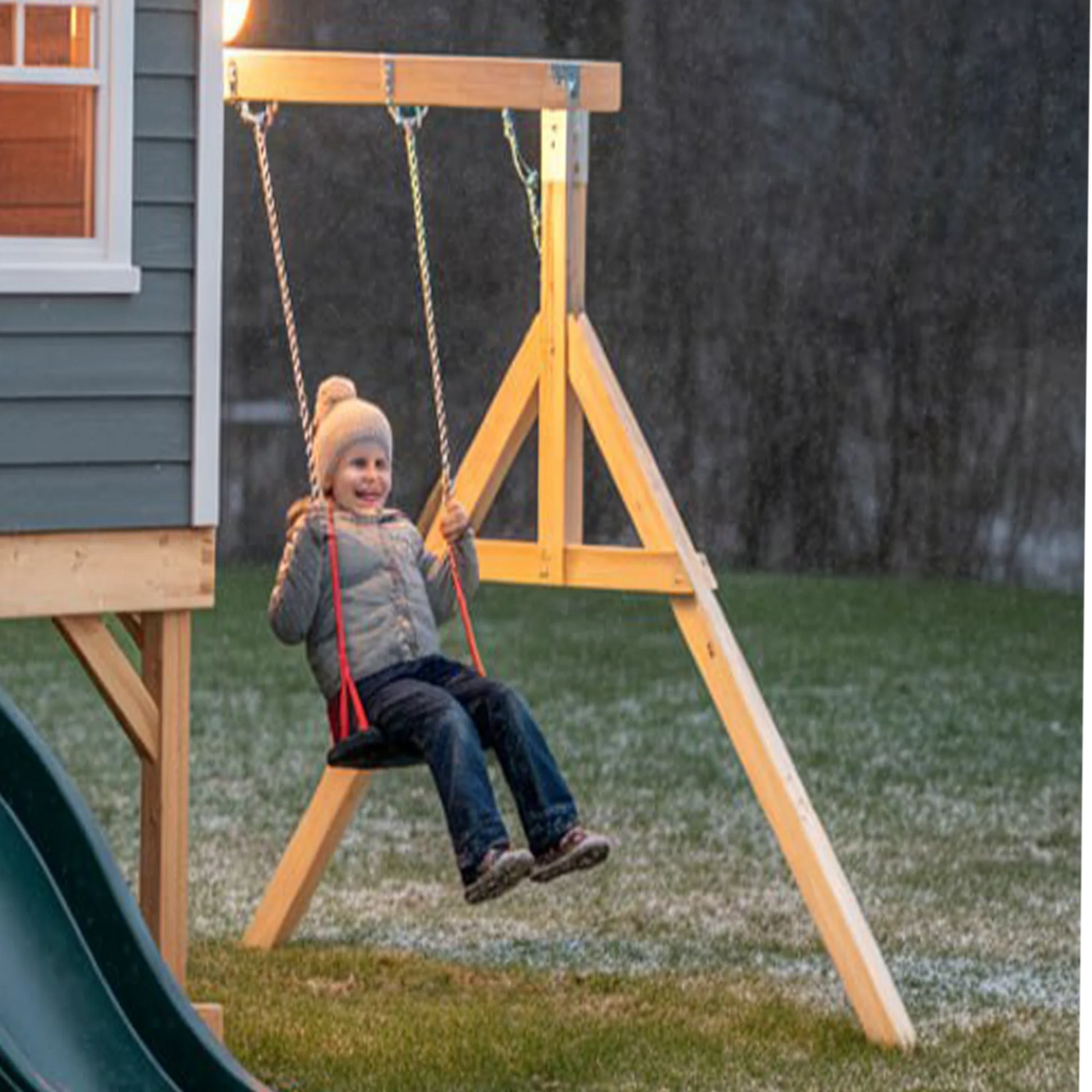 Slide & Double Swings: Includes a smooth green slide and a sturdy swing set, providing hours of active fun.