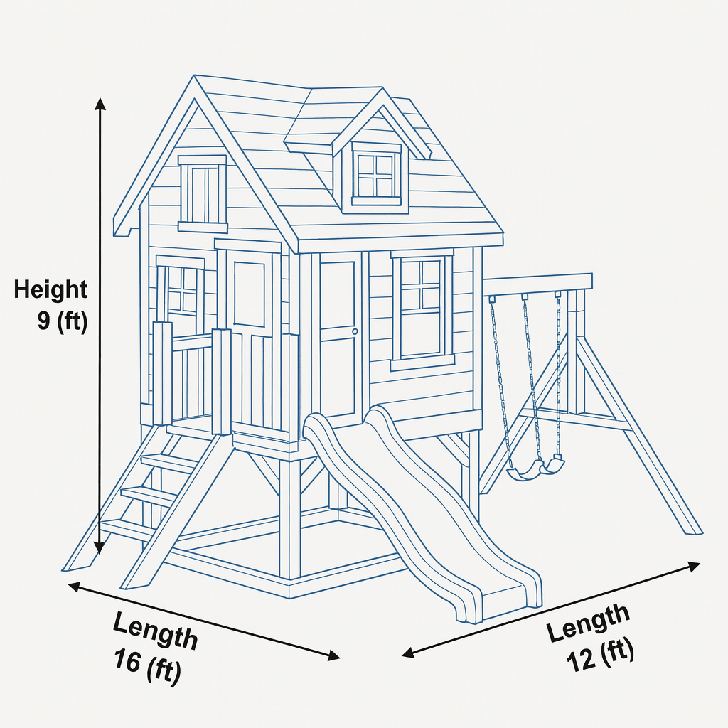 This playhouse encourages creativity, active play, and social interaction, making it a centerpiece for family fun. Perfect for ages 3–10.